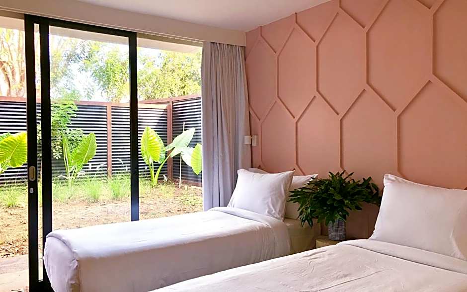 This Family two bedroom pool tent features private bathrooms for the 2 bedrooms, with private garden and pool, open-air living room and soaking bathtub.